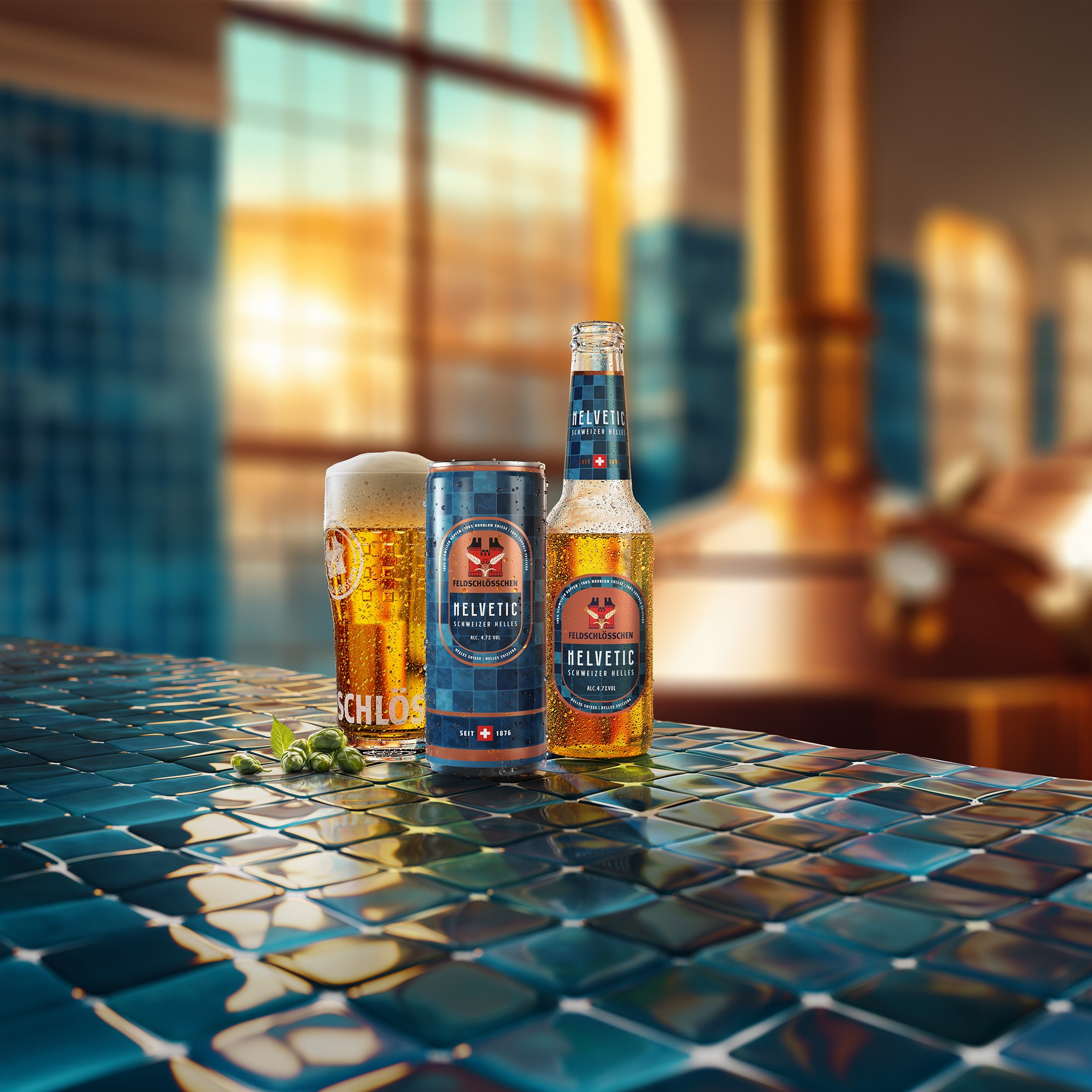 Ein Schweizer Helles, inspiriert von der Schönheit unseres Sudhauses: das neue Feldschlösschen Helvetic. Gebraut aus 100% Schweizer Hopfen für höchste Qualität, dieses vollmundige Bier enthüllt leichte Malznoten, begleitet von einem leicht süsslichen Abgang. Erhältlich in der Gastronomie, in unserem Online-Getränkeshop und im Detailhandel.